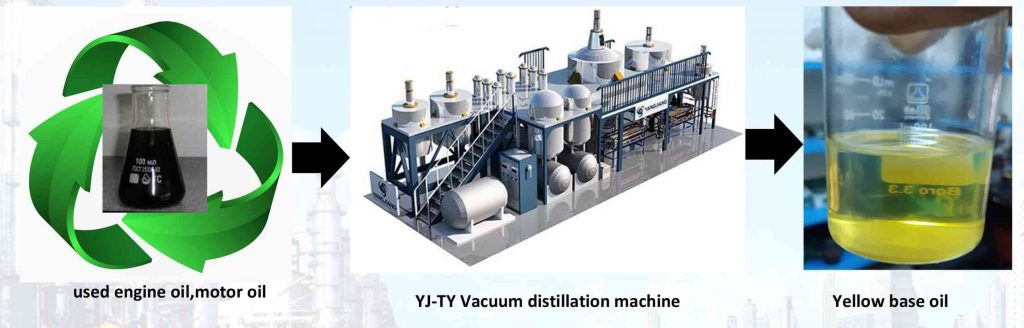 YJ-TY lube oil recycling plant for used oil is particularly suitable to regenerate used engine oil, including diesel engine oil, gasoline engine oil, motor oil, ship engine oil, truck oil, and used hydraulic oil, and other used machinery lubrication oil into SN80, SN100, SN150, SN300, SN500 base oil.